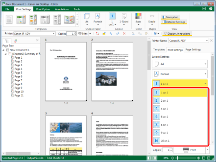 Select the page layout pattern in [Layout Settings] on the [Print Settings] tab on the Details Window.