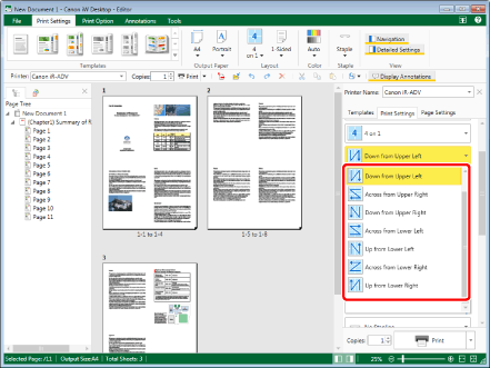 Select the page order in [Layout Settings] on the [Print Settings] tab on the Details Window.