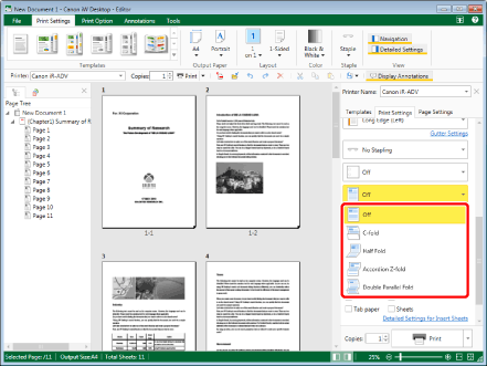 Select the fold pattern to set in [Detailed Settings for Printing] on the [Print Settings] tab on the Details Window.