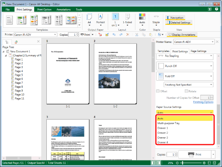 Select the paper source to use for printing the document text in [Paper Source Settings] on the [Print Settings] tab on the Details Window.