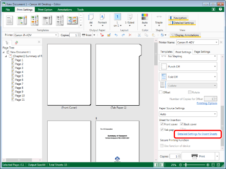 Click [Detailed Settings for Insert Sheets] in [Sheet for Insertion] on the [Print Settings] tab on the Details Window.