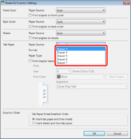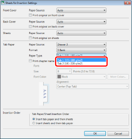 Select [Insert tab paper and then sheets] or [Insert sheets and then tab paper].