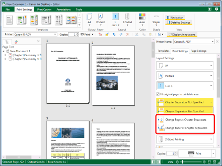 When not specifying the chapter separation settings, select [Chapter Separators Not Specified] in [Layout Settings] on the [Print Settings] tab on the Details Window. Or, click
