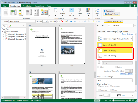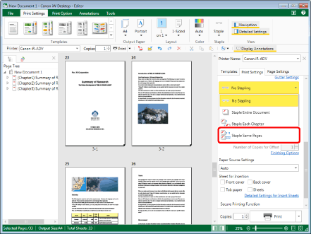 (Staple) on the ribbon and select [Staple Same Pages Using Eco Function].