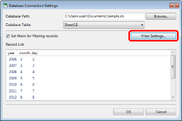 You can also disable a filter by deselecting the [Set filters for filtering records] check box in the [Database Connection/Settings] dialog box.