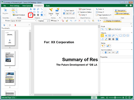 Because markers are drawn semitransparent, even if a marker is placed in front, other inserted annotations and the document behind it remains visible.