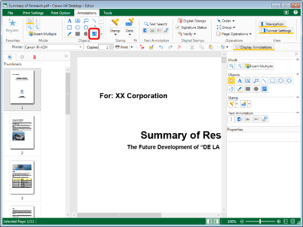 This operation can also be performed with the tool buttons on the toolbar. If tool buttons are not displayed on the toolbar of Desktop Editor, see the following to display them.