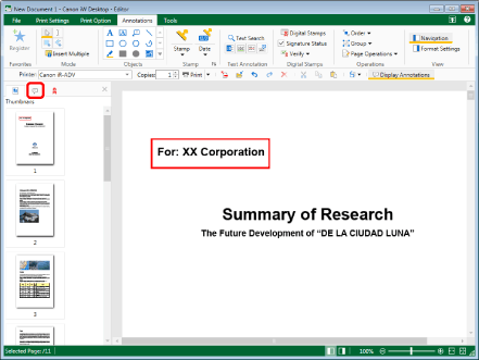 The [Thumbnails] tab is displayed in the Navigation Window of the Annotations Mode by default.