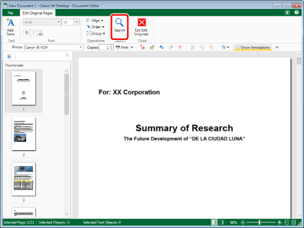 This operation can also be performed with the tool buttons on the toolbar. If tool buttons are not displayed on the toolbar of Desktop Editor, see the following to display them.