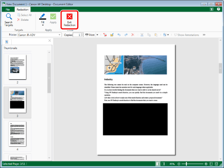 Click [Cancel] to close the Redaction Mode without applying the redactions.