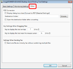 The [imageRUNNER ADVANCE Desktop Quick Printing Tool Settings] dialog box is displayed.