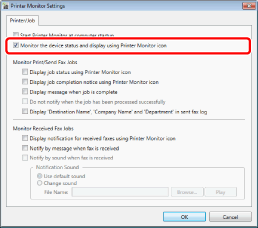 To monitor the status of devices with the status display icon on the Taskbar, the following conditions must be met.