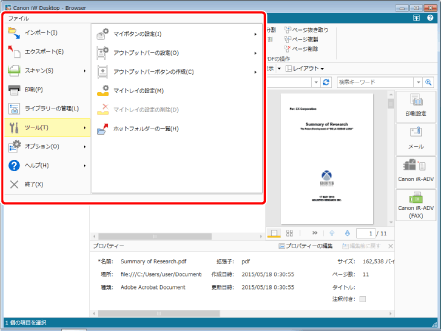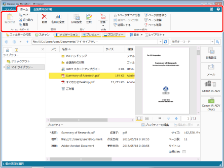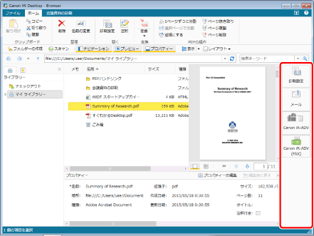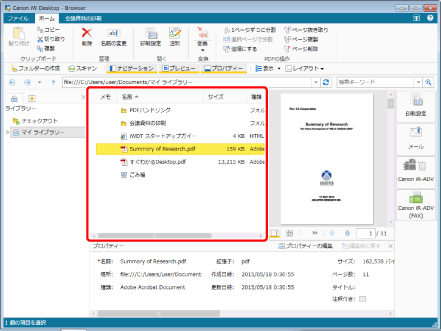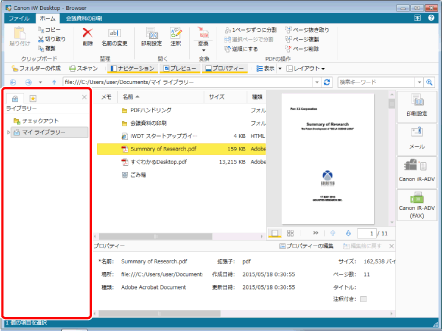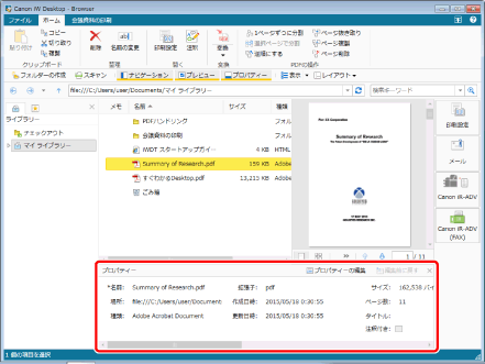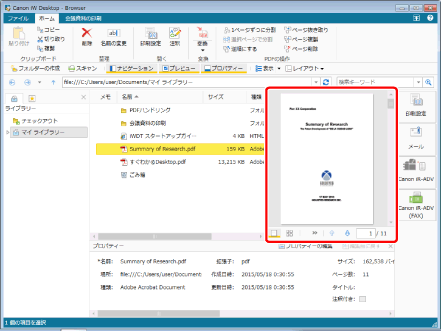 プレビューウィンドウの表示/非表示は、切り替えられます。詳細は次を参照してください。