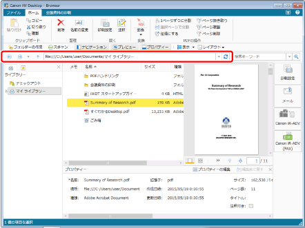 ファイルリストビューウィンドウの表示は、アドレスバーの