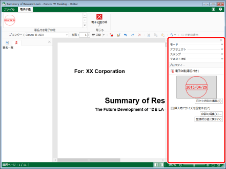 電子印鑑モードの起動中は、詳細ウィンドウに表示される注釈のボタンをクリックできません。