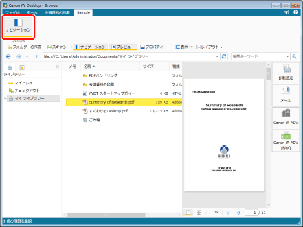 Desktop Browserのナビゲーションウィンドウの表示/非表示を切り替えられます。