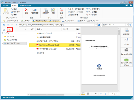 ツールバーのツールボタンでも同じ操作ができます。Desktop Browserのツールバーにツールボタンが表示されていない場合は、次を参照して表示させてください。