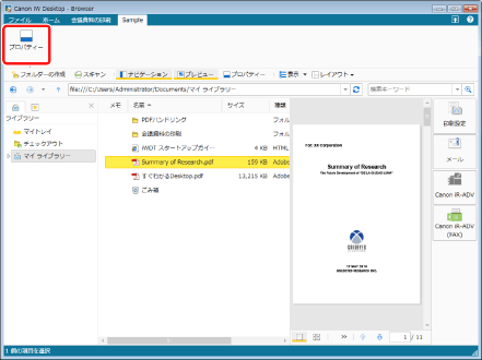 ツールバーのツールボタンでも同じ操作ができます。Desktop Browserのツールバーにツールボタンが表示されていない場合は、次を参照して表示させてください。