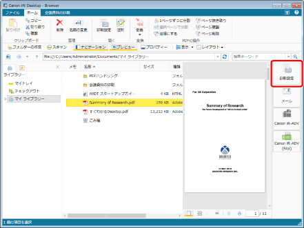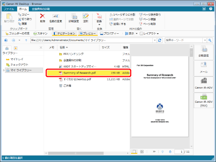 11個以上の文書を選択して、[開く]、または[注釈]をクリックした場合は、選択されている文書のうち、ファイルリストビューウィンドウのリスト表示で一番上に表示されている文書のみがDesktop Editorで開きます。