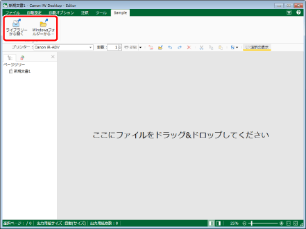 ツールバーのツールボタンでも同じ操作ができます。Desktop Editorのツールバーにツールボタンが表示されていない場合は、次を参照して表示させてください。