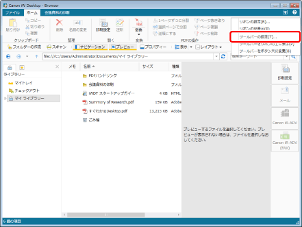 文書の送信先フォルダーも、Desktop Editorのツールバーにボタンとして追加できます。