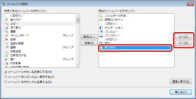 [ツールバーの設定]ダイアログボックスで、[ツールバーにボタン名を表示する]のチェックマークを外す