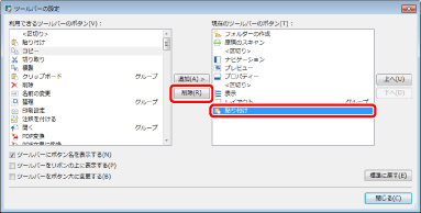 [現在のツールバーのボタン]でボタンを選択したあと、[追加]をクリックした場合は、選択したボタンの下に[利用できるツールバーのボタン]で選択したボタンが追加されます。