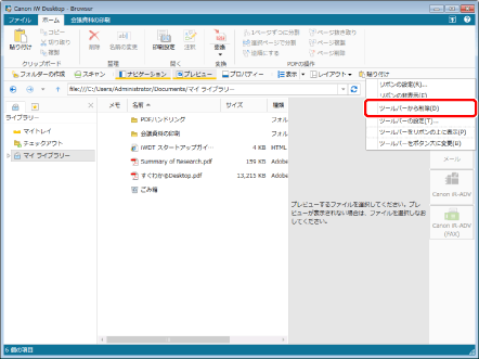 ツールバーからボタンをすべて削除した場合、ツールバーは非表示になります。