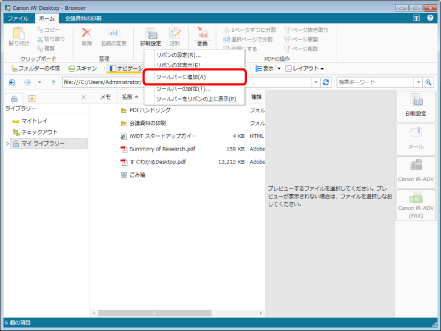 アウトプットバーに登録されているボタンも、Desktop Browserのツールバーにボタンとして追加できます。