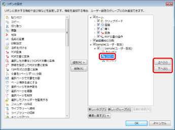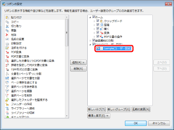 初期設定で表示されているタブのグループ内のコマンドは、並び順を変更できません。
