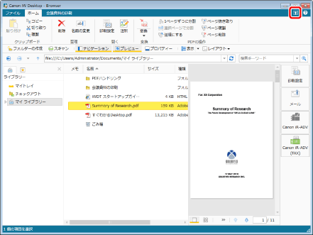 リボンの表示/非表示を切り替えられます。リボンを非表示にすると、ワークウィンドウを大きく表示できます。