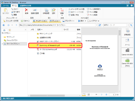 [システム設定]で[Canon Desktop Documentにオリジナル文書を保存する]にチェックマークを付けて保存すると、IWB文書の中にオリジナル文書が格納されます。