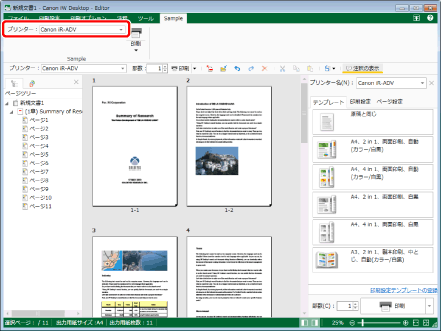 出力用紙が混在していた場合(例:A4/A3)、大きいほうの用紙サイズに合わせてイメージが縮小されます。