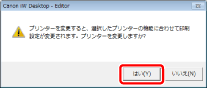 [システム設定]で、[印刷時に印刷プレビューが表示されていない場合、確認メッセージを表示する]にチェックマークを付けた場合、次のモードの起動中に上記の操作を行うと、[印刷]ダイアログボックスが表示される前に確認メッセージが表示されます。