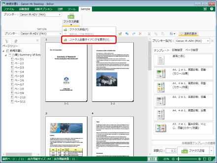 をクリックして、[ファクス送信ダイアログを表示]を選択します。