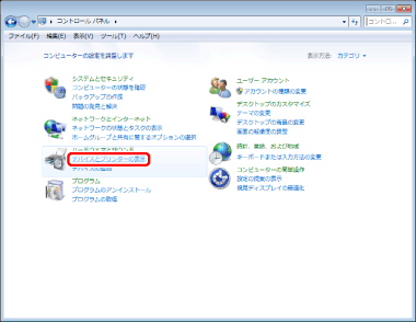 [ハードウェアとサウンド]の[デバイスとプリンターの表示]を選択します。