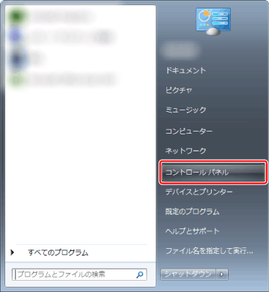 Windows 8/Windows 8.1の場合は、チャームの[設定] > [コントロールパネル]を選択します。