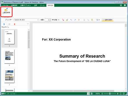 ここでは、PDF文書を上書き保存する方法について説明します。