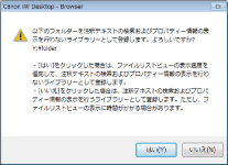 アドバンスドボックス上のライブラリーでは、PDF文書の注釈情報の処理に時間がかかる場合があります。[はい]をクリックすると、ライブラリー登録時に表示される確認画面で注釈テキストの検索、[注釈付き]の表示をしない設定となり、このような問題を回避できます。