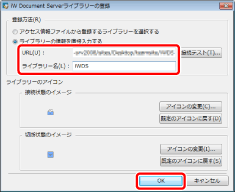 [iW Document Serverライブラリーの登録]ダイアログボックスが表示されます。