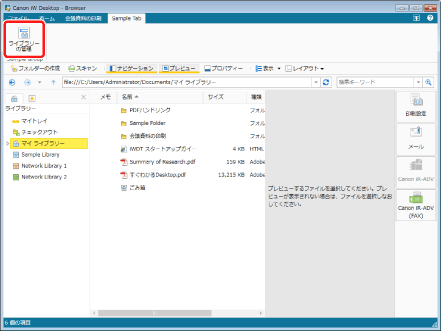 登録を解除したライブラリー内の文書を再度参照する場合は、ライブラリーの再登録が必要です。