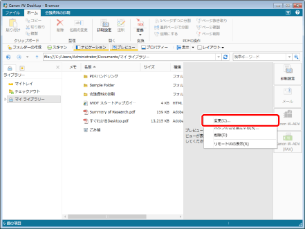 をクリックして、[変更]を選択しても同じ操作ができます。リボンやツールバーにボタンが表示されていない場合は、次を参照して表示させてください。 |