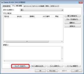 [アドレス帳の編集]タブで[フォルダー指定]をクリックします。