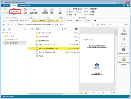 ファイルリストビューウィンドウで選択した文書のプレビューが生成されている途中は、文書を移動できません。