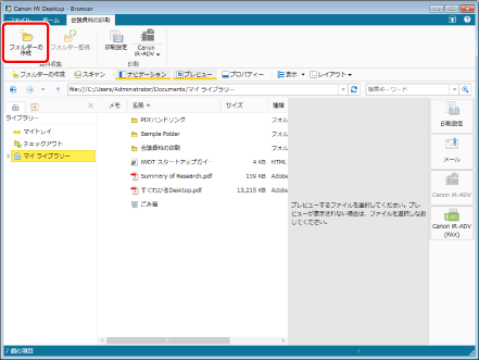 ツールバーのツールボタンでも同じ操作ができます。Desktop Browserのツールバーにツールボタンが表示されていない場合は、次を参照して表示させてください。