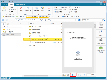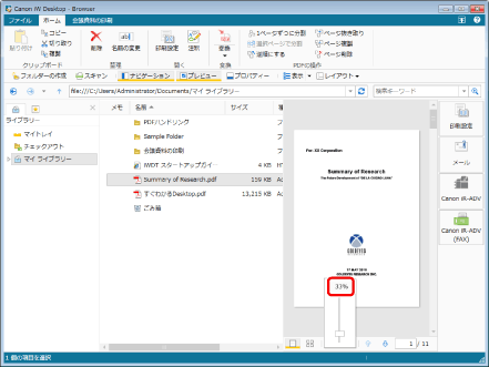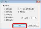 表示倍率を指定する場合は、[ズーム]に直接倍率を入力します。倍率は、1%単位で入力できます。上限や下限を超えた数字が入力された場合は、指定した表示倍率に近い表示可能な倍率で自動的に表示されます(整数値以外の値で数値を確定した場合、確定前の数値に戻ります)。