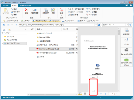 プレビューウィンドウ内にフォーカスがある状態で[Ctrl]キーを押しながらマウスのホイールを回転すると、表示倍率を10%ずつ変更できます。前回転で拡大、後回転で縮小です。