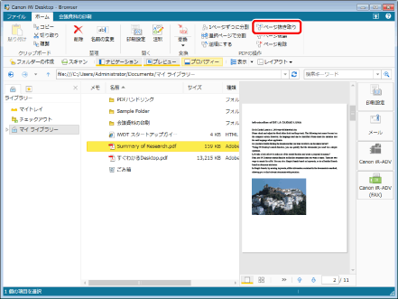 複数ページで暗号化されていないPDF文書のみ、選択ページの抜き取りができます。