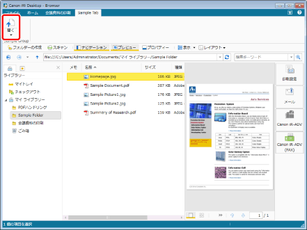 ツールバーのツールボタンでも同じ操作ができます。Desktop Browserのツールバーにツールボタンが表示されていない場合は、次を参照して表示させてください。