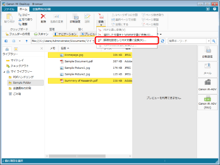 選択した文書の中に、変換できない文書が含まれている場合は、変換できなかった文書とエラーメッセージが表示されます。